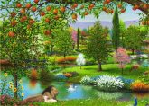God created a perfect garden on earth called Eden and put the first two people in it called Adam and Eve. |