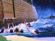 The descendants of Adam and Eve rebelled more and more against God until things got so bad that God decided to destroy everything except eight people and the animals. |